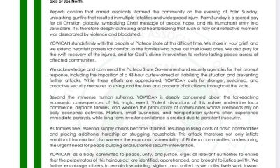 By Jide Afolabi The Youth Wing of the Christian Association of Nigeria (YOWICAN) has expressed deep sorrow and heartfelt sympathy to the Government and people of...